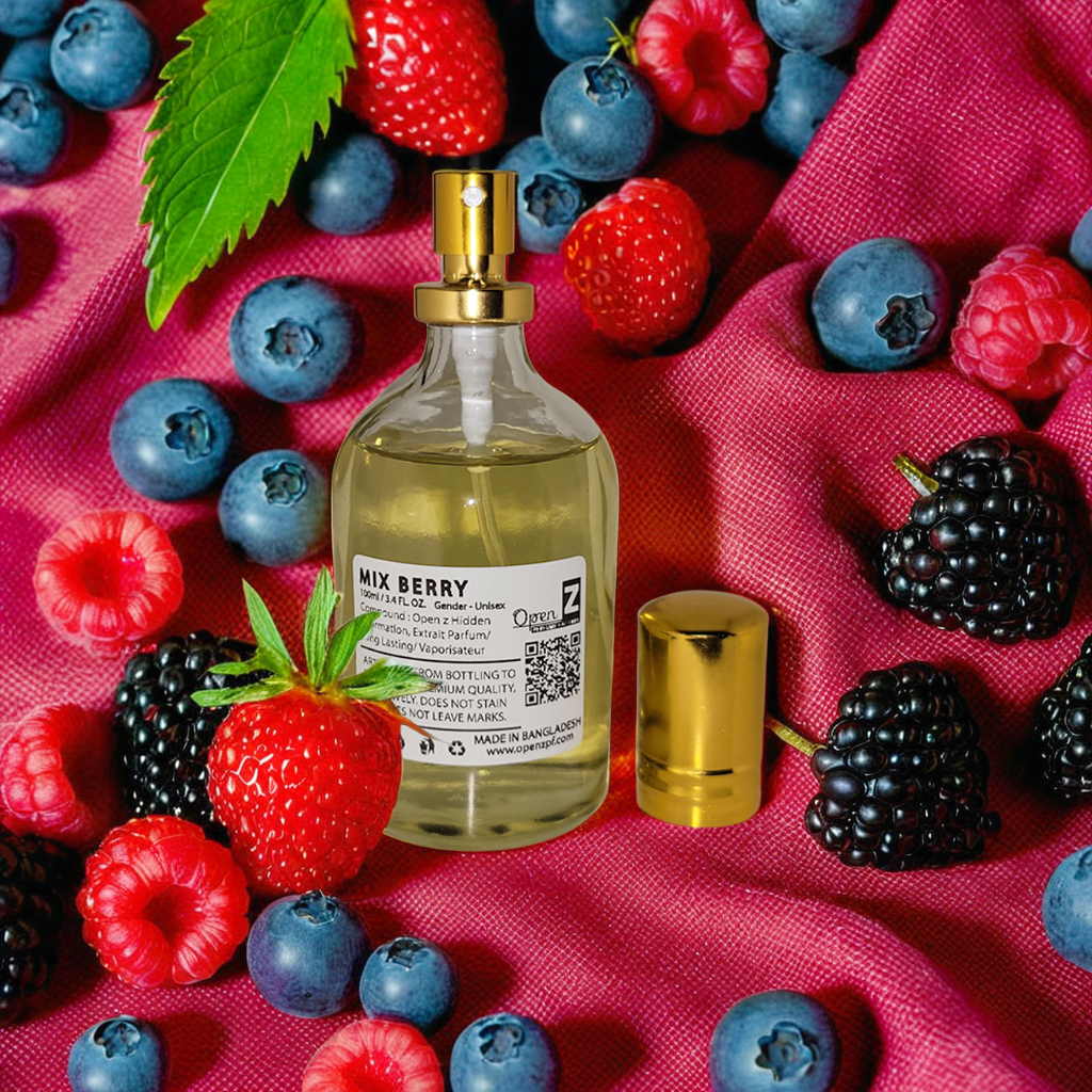 Mix Berry Perfume is a delightful fragrance inspired by the luscious aroma of fresh, juicy berries. This playful and vibrant scent combines the sweetness of strawberries, raspberries, and blueberries with a hint of floral and musky undertones. It’s designed to capture the essence of a refreshing summer day, filled with the irresistible charm of mixed berries.